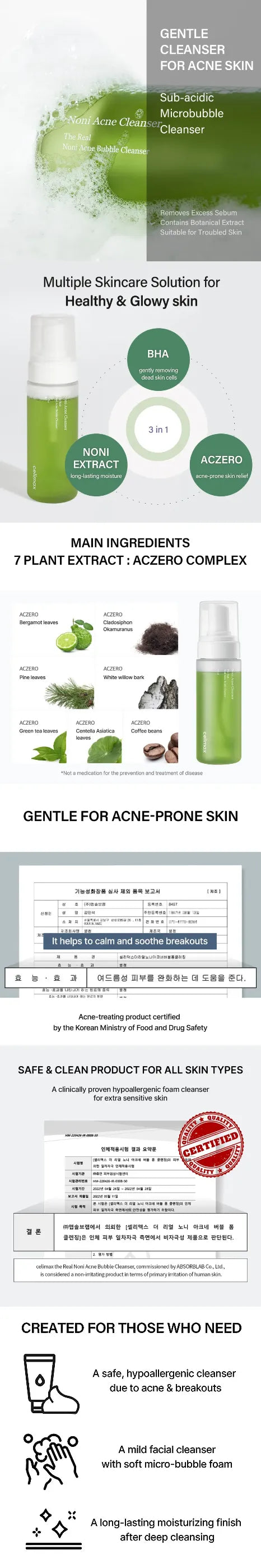 A microbubble cleanser that passed the 1st skin stimulation test with a low-stimulus result, and contains Morinda Citrifolia Extract, which is good for relieving acne-prone skin.