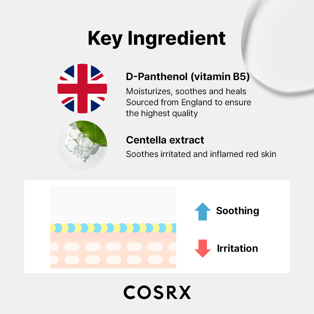 • D-Panthenol (vitamin B5): Moisturizes, soothes and heals